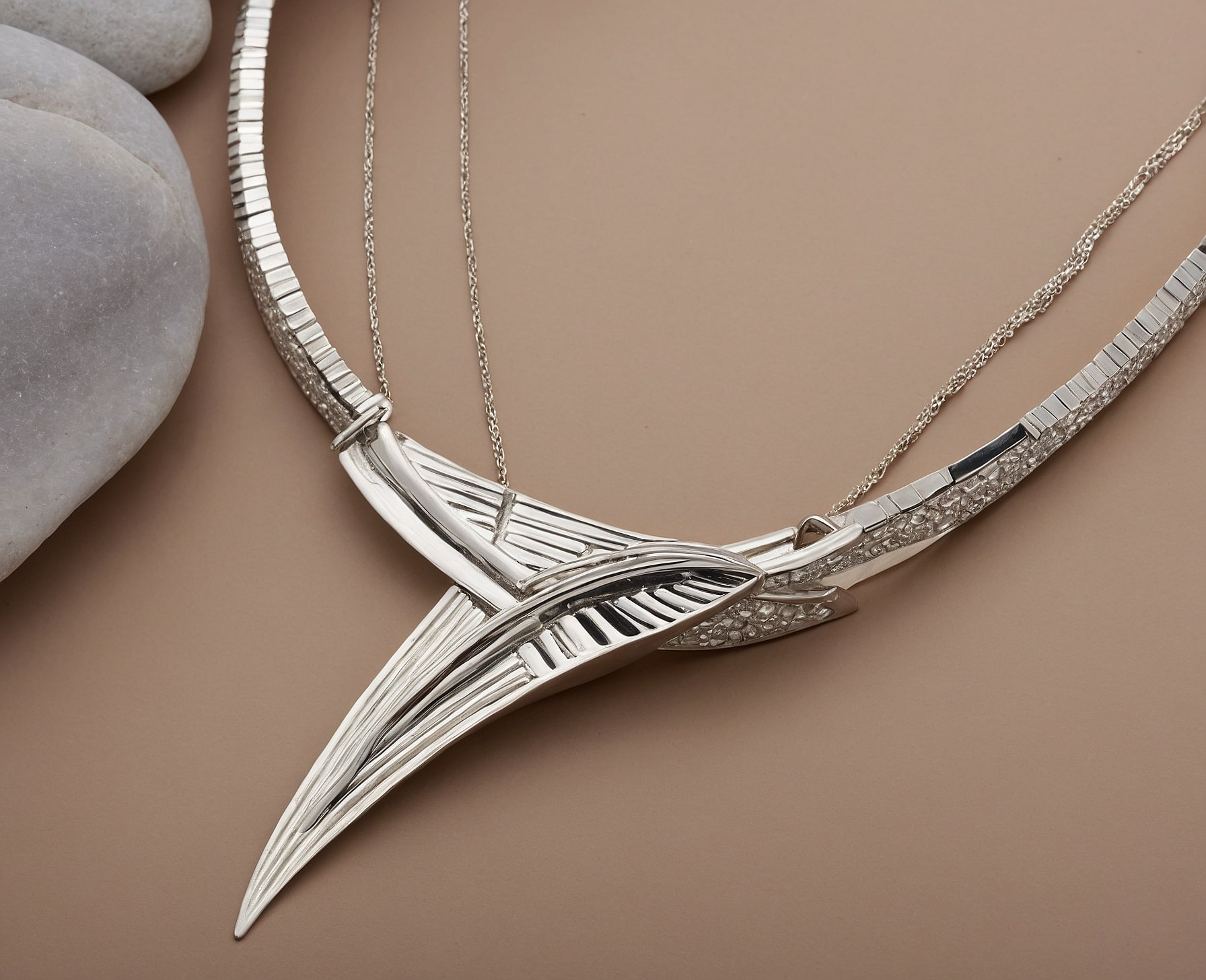 Collar de plata contemporáneo, ideal para cualquier evento.